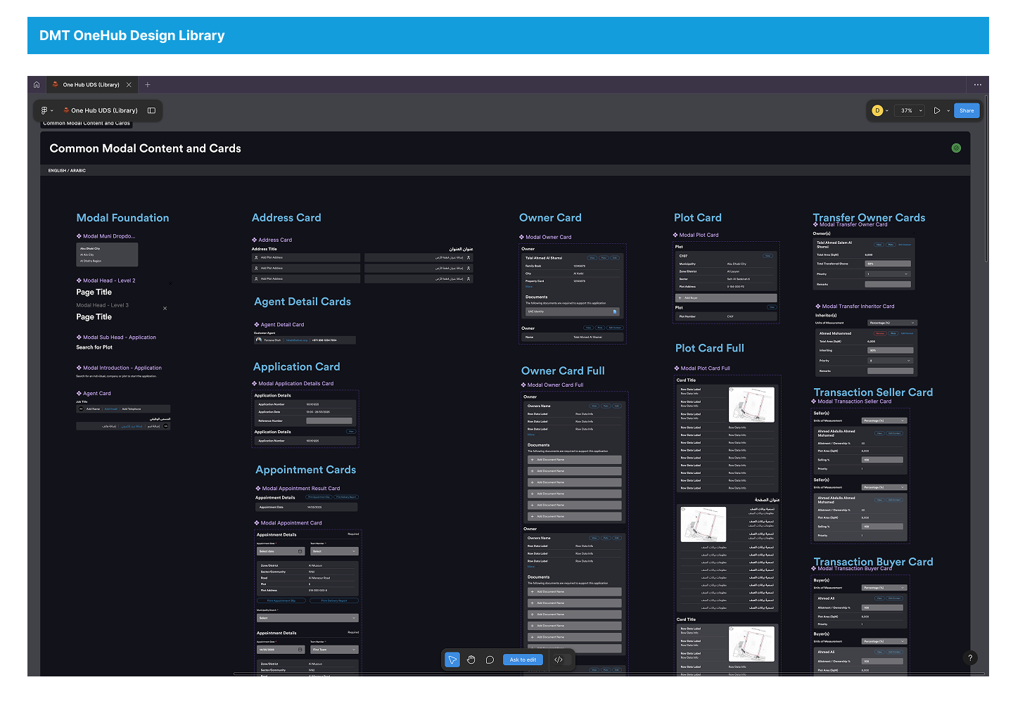 - UI - Built the new OneHub Design System following TAMM guidelines and token/atomic design principles. (Figma)